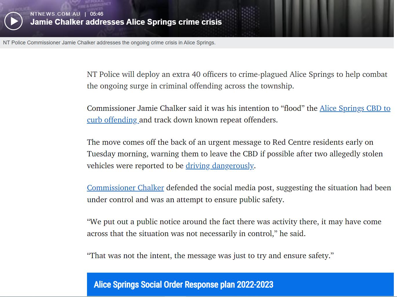 This is what it comes to, an extra 40 police being flown into town to deal with the crisis our community faces, the fact that it had to get as bad as it is for Labor to act beggars belief. The government have been told so many times by so many people that they have lost control and the best we got was SORT.