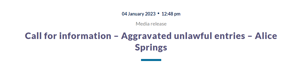 The Northern Territory Police, Southern Crime Squad are investigating a number of incidents: